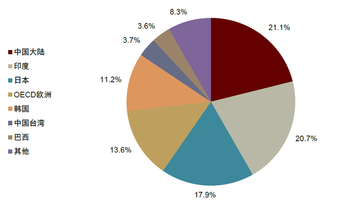 图表9:对比亚太部分地区工业用电占比,印度相对偏低