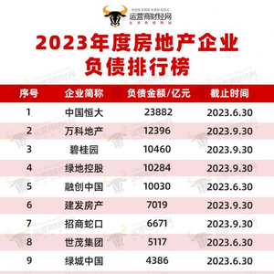 5家负债上万亿!运营商财经网推出“2023年度房地产企业负债榜”