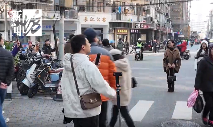 这几天,从早到晚,饭店门口的各个拍摄位置都有络绎不绝的市民游客前来打卡,甚至还有不少人带着行李箱。