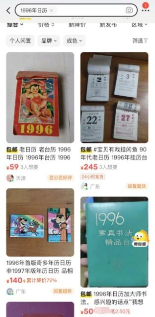 发现有不少售卖1996年日历的帖子