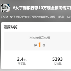 1月8日,话题#女子到银行存10万现金被问钱来源#冲上热搜第一。