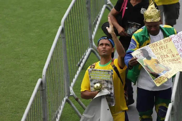 2023年1月2日,球迷们在桑托斯维拉贝尔米罗体育场排队悼念贝利。 当日,“球王”贝利葬礼在巴西桑托斯维拉贝尔米罗体育场举行。 新华社发(拉赫尔·帕特拉索摄)