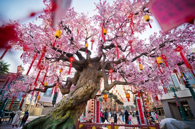 “环球中国年”期间,园区内外都换上了农历新年主题装饰