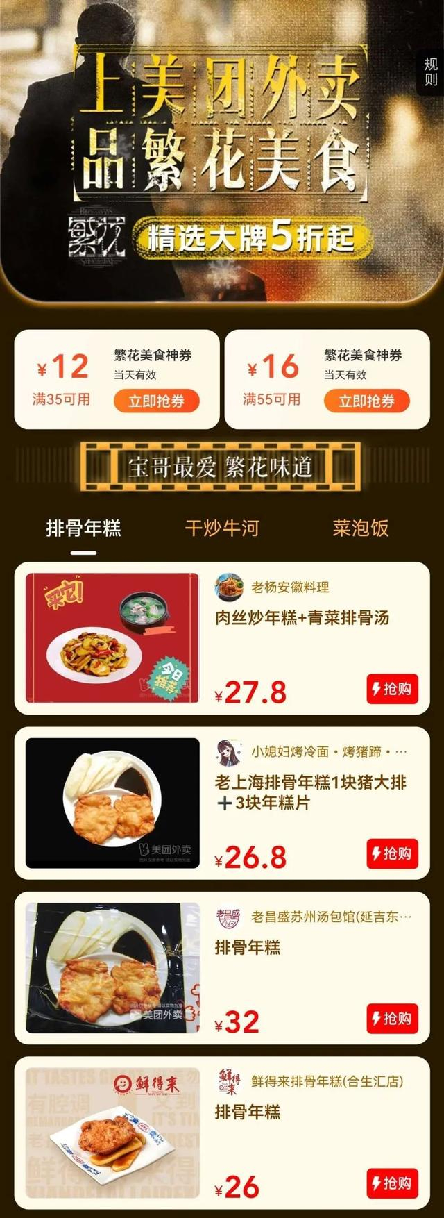 为进一步提升用户体验、满足剧迷们在外卖平台的“打卡”需求,美团外卖上海相关负责人表示,将在平台开展“繁花美食”专题活动,并在活动中选取更多以《繁花》剧中美食为代表的上海小吃并提供大额优惠券。上海用户每天通过在美团外卖搜索“繁花美食”即可参与优惠活动。