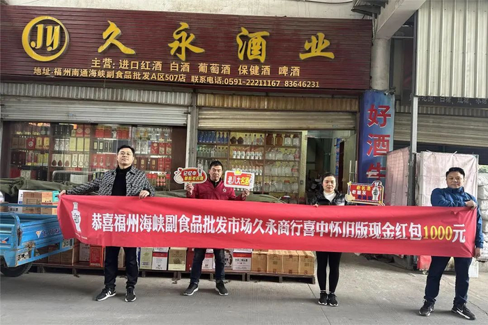 无独有偶,两天前,福建的雷先生在福州久永酒业买了两瓶古井贡酒怀旧版,在工作人员的推荐下,他扫了一下盖内码,居然中了1000元红包,雷先生高兴地振臂高呼。