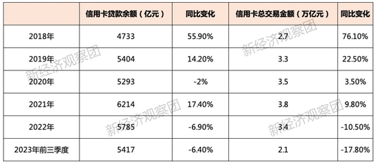 在2018年前后,此举曾初见成效,当年信用卡贷款余额一度达到4733亿元,同比猛增55.90%。但2019年相应增速很快降至14.2%,2020年出现-2%的增长;2021年又达到17.4%的增长,随后信用卡信贷余额再次陷入下滑态势,在2022年余额跌破6000亿元关口后,2023年前三季度再低下滑6.40%,信用卡贷款余额回落到5417亿元,与2019年基本持平。