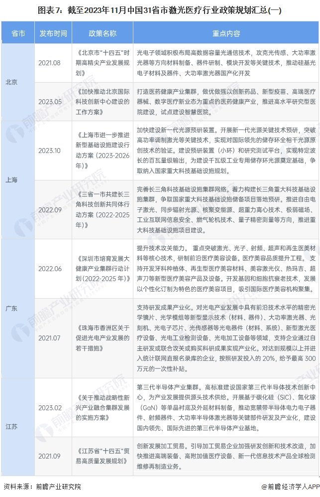 ——部分省市激光医疗行业政策汇总