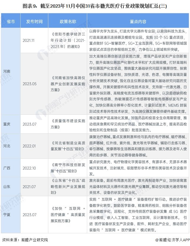 ——部分省市激光医疗行业重点发展方向解读
