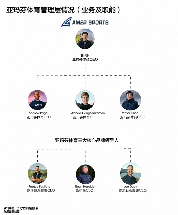 首席财务官Andrew Page在2023年加入公司,此前曾是美国运动鞋服零售巨头Foot Locker的CFO;首席战略官Victor Chen也在2020年来到亚玛芬体育,他之前的身份标签是波士顿咨询集团的合伙人。