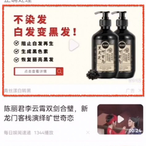 出现在百度APP首页推荐的青丝漾洗发水广告。