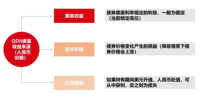 QDII债基投资收益(人民币份额)=票息收入+资本利得+汇兑损益