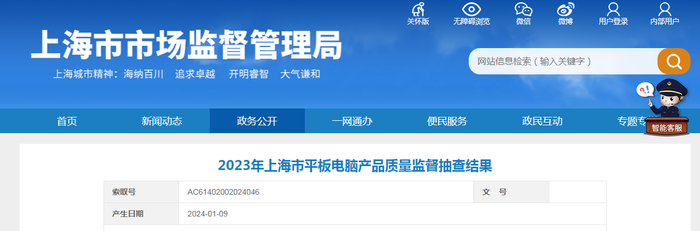 本次监督抽查依据SHSSXZ0146-2023《平板电脑上海市产品质量监督抽查实施细则》组织实施。