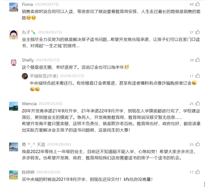 在相关报道的评论区,也可以看到大量家长的心急如焚:“销售卖房说可以入读,等卖完了就看教育局安排,人生走过最长的路就是销售的套路。”