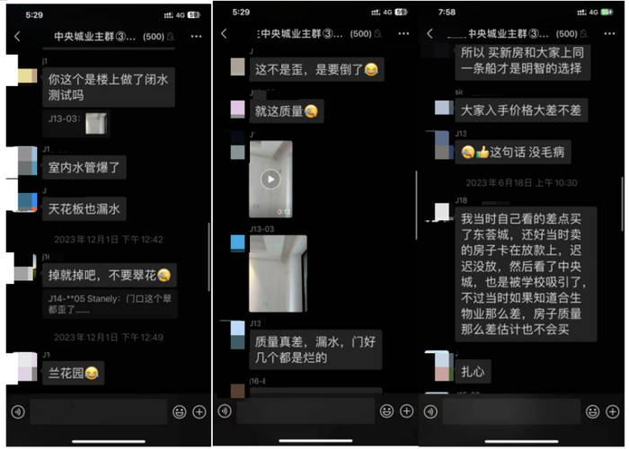 另外,z先生还表示,业主群内有不少业主反馈项目的质量令人堪忧。