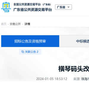 近日,据广东省公共资源交易平台消息,横琴客运码头改扩建工程(一期)正面向社会公开招标。据悉,该项目拟新建4个500吨级泊位,预计总投资约3342.97万元。