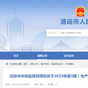 清远市市场监督管理局关于2024年第3期(生产环节任务)食品安全监督抽检信息的通告