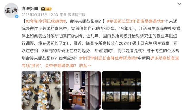 与此同时,多所高校公布的2024年硕士研究生招生简章中,3年制的专硕也正在成为趋势。