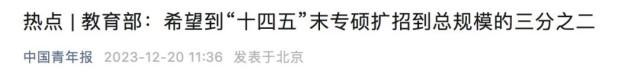 宁夏大学研究生院称,2023年宁夏大学录取的专业学位硕士研究生占总招生人数的72%,已经超过了三分之二,达到了《教育部关于深入推进学术学位与专业学位研究生教育分类发展的意见》中提到的“到‘十四五’末,将专业学位硕士研究生招生规模扩大到硕士研究生招生总规模的三分之二左右”的要求。