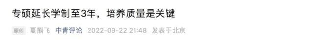 对于“多所高校官宣延长专硕学制”的现象,中青评论也曾发文称:延长学制也要警惕专硕培养“学硕化”趋势,在消除学制长短上差距的同时,也要更加明确专硕培养的特点和优势,让专硕与学硕实现差异化培养和互补性发展。