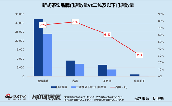 招股书显示,截至2023年12月31日,古茗的门店数量已达到9001家,距离万店目标只有一步之遥,规模仅次于蜜雪冰城。其中,79%门店位于二线及以下城市,38%门店位于远离市中心的乡镇。2021-2023年,二线及以下城市净新增门店2659家,同期一线和新一线城市净新增门店数分别为179家、469家。换而言之,下沉市场是古茗的主战场。
