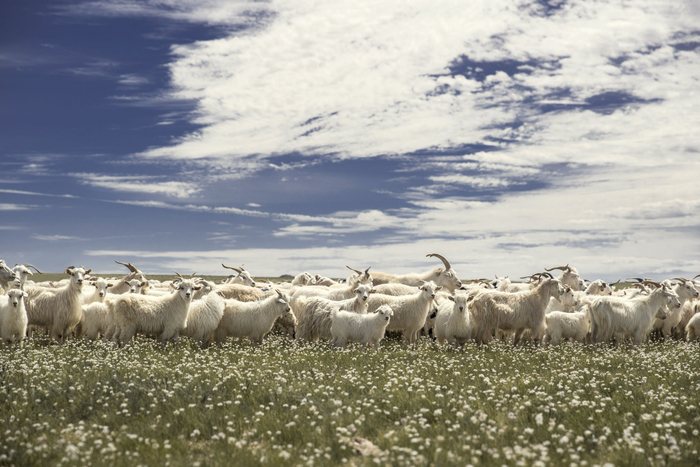 鄂尔多斯诞生于内蒙古鄂尔多斯高原——一个三面被黄河“几”字弯包围的区域,冬日昼夜温差可达50摄氏度。这里不仅拥有着别致的荒漠草原景观,还拥有着独特的中国“物产”——阿尔巴斯绒山羊以及被冠以“软黄金”之称的羊绒。