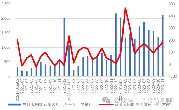 ⚫2023年1-11月,全国总新增装机28310万千瓦,其中新增火电装机4655万千瓦,新增水电装机939万千瓦,新增核电装机119万千瓦,新增风电装机4139万千瓦,新增光伏装机16388万千瓦。