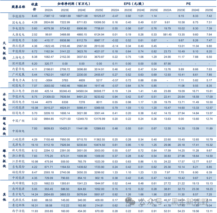 ⚫电力运营商有望受益标的:国投电力、国电电力、粤电力A、华电国际、华能国际等;同时,煤电设备制造商和灵活性改造技术类公司也有望受益于煤电新周期的开启,设备制造商有望受益标的:东方电气;灵活性改造有望受益标的:龙源技术、青达环保、西子洁能等。