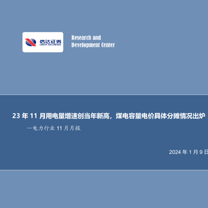 本文源自报告:《电力月报:23年11月用电量增速创当年新高,煤电容量电价具体分摊情况出炉》