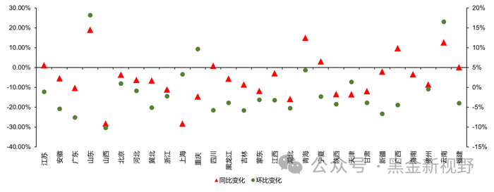 ⚫分子行业看,高技术装备制造板块中用电量占比前三的为计算机通信设备制造业(24.47%)、金属制品业(24.18%)和电气机械制造业(17.86%),新增用电贡献率排名前三的为电气机械制造业(30.85%)、计算机通信设备制造业(19.94%)、金属制品业(19.86%)。消费板块中占比前三的为批发和零售业(33.85%)、交通运输、仓储及邮政业(22.95%)和房地产业(16.75%),新增用电贡献率排名前三的为批发和零售业(44.22%)、交通运输业(22.53%)、房地产业(13.70%)。六大高耗能板块中占比前三的为电力热力生产及供应业(30.40%)、有色金属冶炼及压延加工业(20.85%)和黑色金属冶炼及压延加工业(16.83%),新增用电贡献率排名前三的为电力热力供应业(43.51%)、有色金属加工业(17.30%)和化学相关制造业(10.04%)。