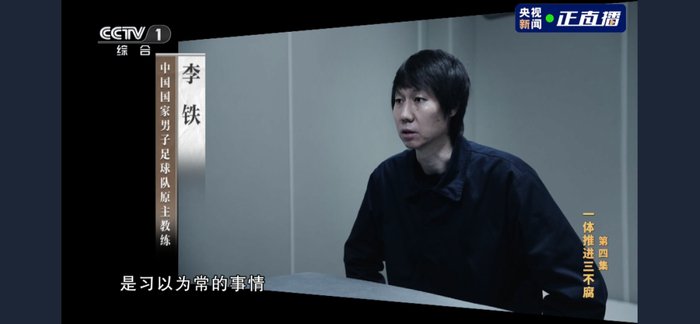 李铁(中国国家男子足球队原主教练):有的事情感觉在足球圈是习以为常的事情,但是现在看来,很多事情都是违法的,都是违法犯罪的事情。