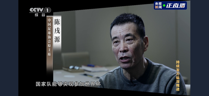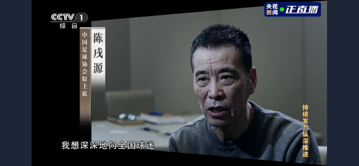 陈戌源:看了改革发展方案,有一种畏难情绪,觉得这件事情,在我的任上,很多事情我是做不了的。实际上也是个政绩观的问题,自己就想在我的任上,国家队能够实现参加世界杯,那不是证明陈戌源很有本事嘛。