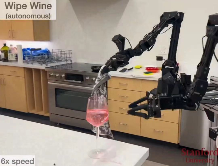 近日,谷歌DeepMind团队和斯坦福大学华人团队等合作研发的能炒菜、做家务的通用机器人Mobile ALOHA在社交媒体上刷屏。和以往更多用于工业领域的机器人不同,Mobile ALOHA将移动性和灵巧性集成到双手移动操作中,不仅能浇花、洗碗、摆放椅子,甚至能帮人剃胡须等。