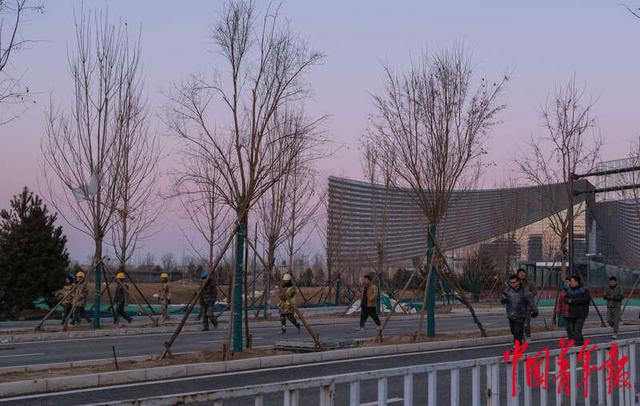 1月9日,北京通州,夜幕降临,建筑工人离开城市副中心三大文化建筑区,目前部分区域仍在建设中。中青报·中青网记者 张玉佳/摄