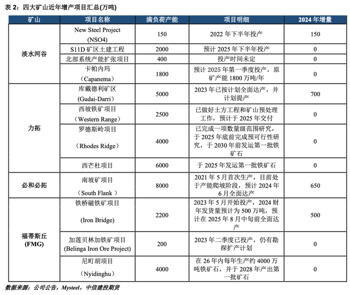 【建投黑色】四大矿山供给展望:产能释放集中于2025年