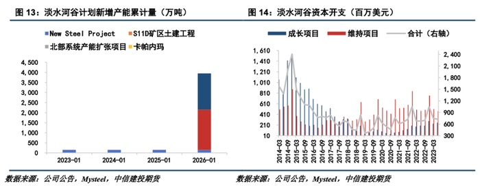 为了在2026年实现340-360 Mtpy的产量目标,淡水河谷的近年增产计划主要为New Steel Project(NSO4)、S11D矿区土建工程、北部系统产能扩张项目以及卡帕内玛项目(Capanema)。