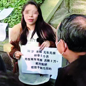 女子“怀孕5个月征婚” 要求男方有车有房月薪2万
