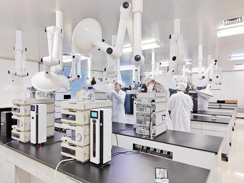 2023年11月27日,在颈复康药业高效液相仪器室,工作人员正在做腰痛宁胶囊中马钱子碱、士的宁含量测定。 河北日报记者 马彦铭摄