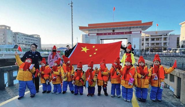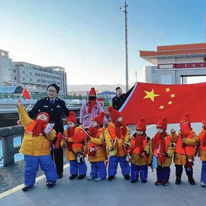 1月9日,来自广西南宁的11名“小砂糖橘”在老师的带领下,来到吉林图们口岸参观游学,他们在图们出入境边防检查站移民管理警察的引导下,参观国境桥梁,在国门前唱国歌,与国旗照合影,接受爱国主义教育。其间,移民管理警察向孩子们赠送了警察公仔毛绒玩具,老师代表孩子们向驻守国门的执勤民警送上“中国人民警察节”节日祝福。