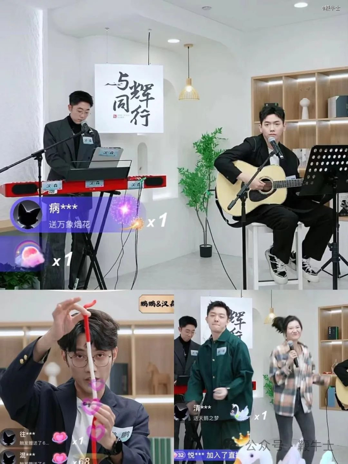 直播开场,与辉同行的主播团队进行了自我介绍,各个主播都以表演才艺的方式完成了首次亮相,其中有东方甄选团队的熟人,也有刚刚走向台前的新人。