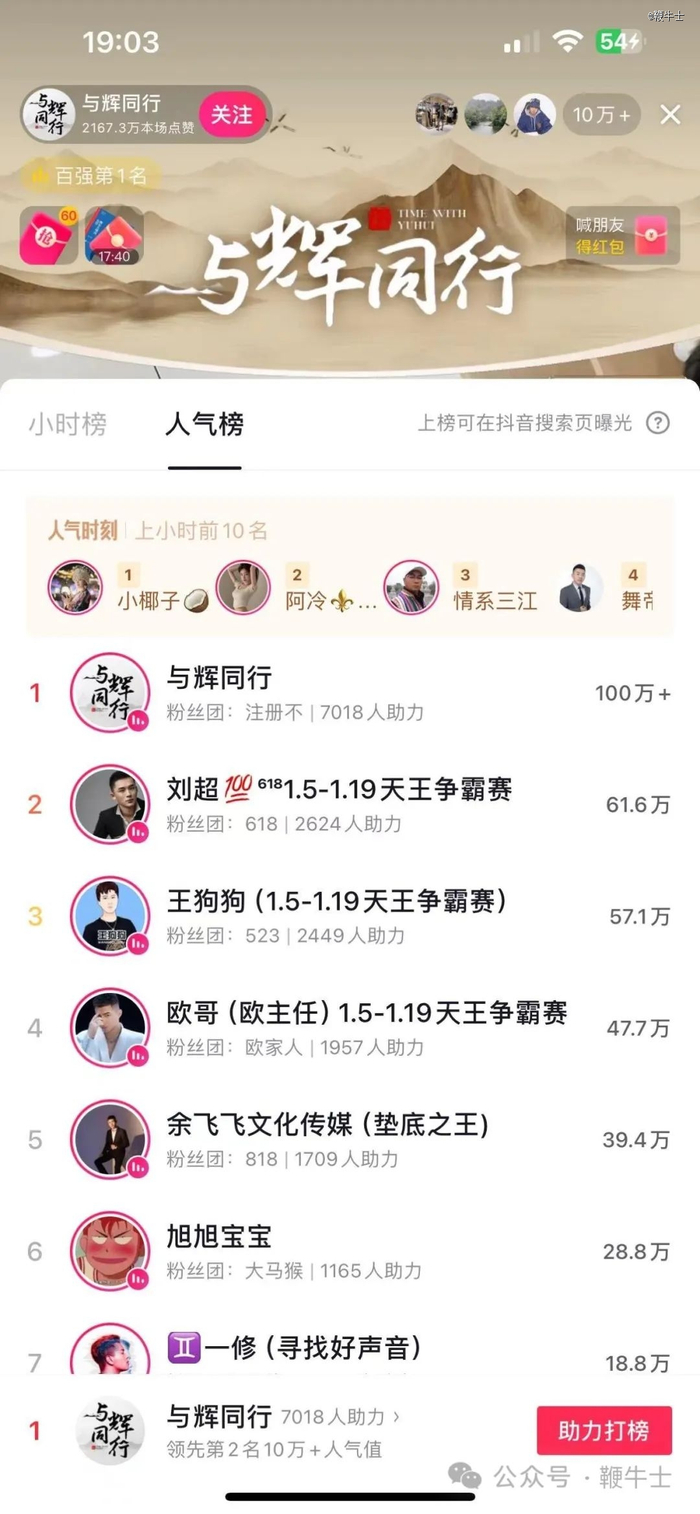 在19时40分,董宇辉开启与辉同行的*次带货,据抖音平台实时数据显示,不到10分钟,该直播间带货总榜的排名迅速攀爬到*名,带货值高达1400余万,远超第二名的400余万。