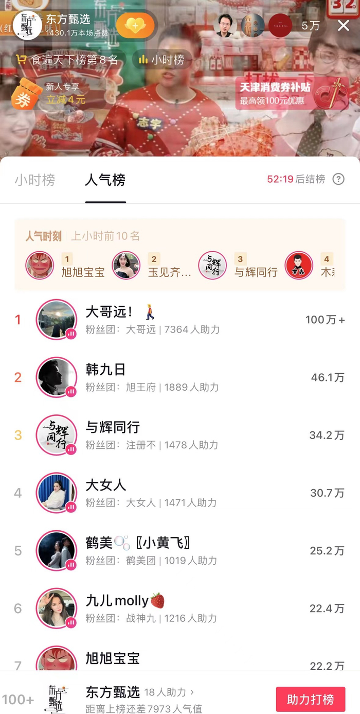 GMV破亿!董宇辉新账号首播:带货排名远超东方甄选