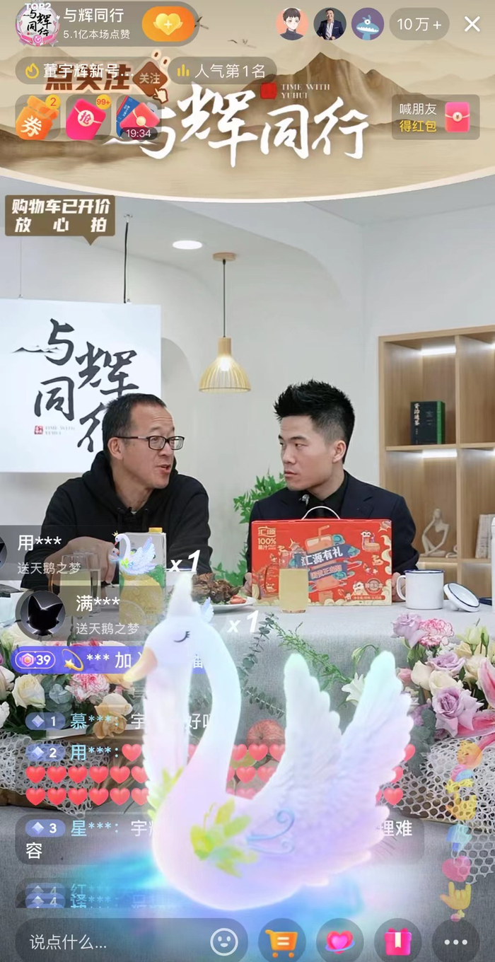 “这个公司(与辉同行)在成立的时候,俞老师也非常支持,从东方甄选每个部门筛选一些人,迅速加入。(大家)都很年轻,也都在迅速磨合。”董宇辉说。