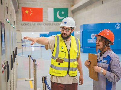 巴基斯坦首都伊斯兰堡以东约55公里,旁遮普省北部的杰赫勒姆河上,卡洛特水电站全力发电。水电站主控室内,24岁的巴基斯坦员工坦兹尔·拉赫曼和巴中同事一起,实时观察着电脑屏幕上显示的水电站运行指标。