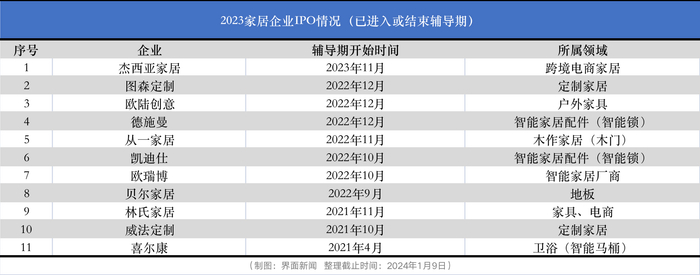 对于A股泛家居行业来说,2023年总算出现了新面孔。尽管此前2021年至2022年进入辅导期的企业,有10家都未披露招股书,部分企业上市计划被搁置或已“流产”。