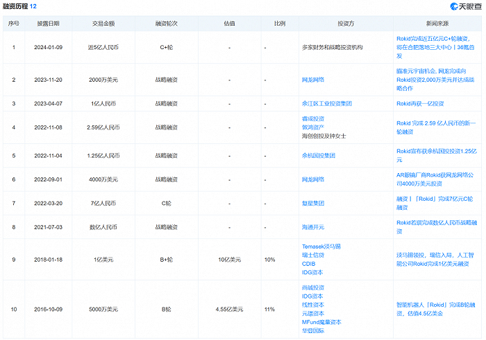 天眼查信息显示,加之最新一轮融资,Rokid共计完成12轮融资,总额累计超过30亿元。其中IDG资本、元璟资本与线性资本一直从天使轮投到了B轮,IDG资本更是参投了B+轮。