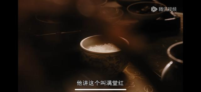 除了配菜“海纳百川”之外,剧中宝总吃泡饭的器皿也有讲究。李舒表示,因为玲子是从日本回来的,所以夜东京盛小菜的碟子都是有些日系风格的小碟子,后期的餐具则是直接从日本订购回来的。剧中出现的“满堂红泡饭”则源于李舒一位忘年交讲述过的一个故事。他说,当年在颖若馆主(盛宣怀孙女、上海程派名票)家中打麻将,宵夜上来一套红碟小碗,这是主人嫌弃手风不好要改运气的讲究。剧中玲子为宝总上了“满堂红”,搭配六道精美配菜,也寓意着万事顺利。