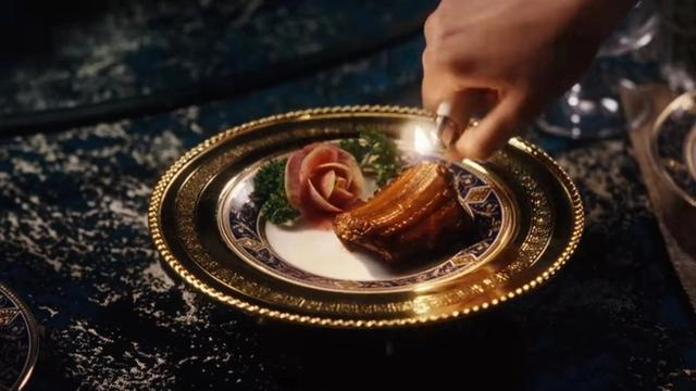 为了保证视觉效果,剧组是在“椒盐大王蛇”的基础上,做出“火焰”效果,这样看上去更“惊艳”。因为一些客观因素,“大王蛇”这道菜在餐桌上已经看不见了。“龙虾三吃”是非常怀旧的菜,尤其是龙虾船,苔圣园专门从仓库里找到当年的龙虾船道具,美术组进行了复刻。