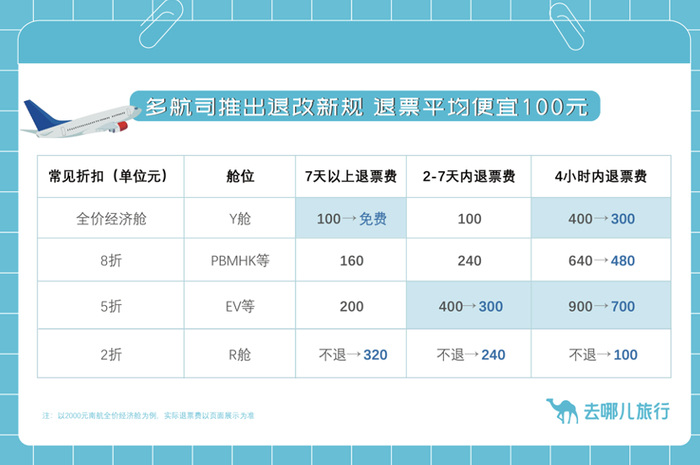 航司今起下调机票退改费,换机型也可免费退