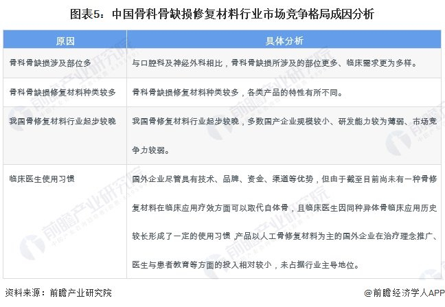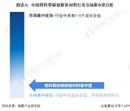 究其根本,我国骨科骨缺损修复材料行业呈现市场集中度低、竞争分散、无龙头企业竞争格局的成因如下: