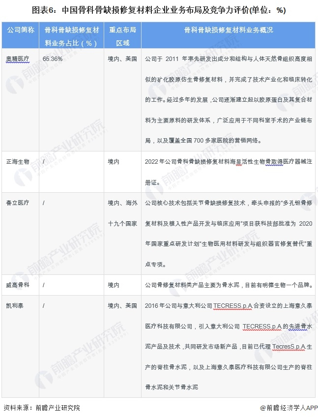 4、中国骨科骨缺损修复材料行业企业布局及竞争力评价